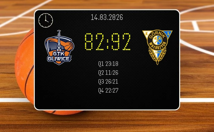 Tauron GTK Gliwice przegrał u siebie z Górnikiem Zamek Książ Wałbrzych 82:92. Po meczu w ramach 22. kolejki Orlen Basket Ligi gospodarze pozostają na 15. miejscu z 27 punktami, a goście umacniają się na 6. pozycji z 34 punktami.