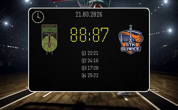 Goście doszli rywala na dystans punktu, ale na samym finiszu zabrakło już tego jednego celnego zagrania. Krosno obroniło minimalne prowadzenie i wygrało 88:87, co w kontekście walki o utrzymanie oznacza dla obu stron potężny ciężar gatunkowy. Krośnianie przedłużyli swoje nadzieje na ligowy byt i zbliżyli się do gliwiczan, którzy pozostają tuż nad nimi w tabeli – GTK jest 15., z 28 punktami po 15 meczach, a Miasto Szkła zajmuje 16. miejsce z 27 punktami po 16 spotkaniach. To jeden z tych wyników, po których w szatni gości długo jeszcze panuje cisza.