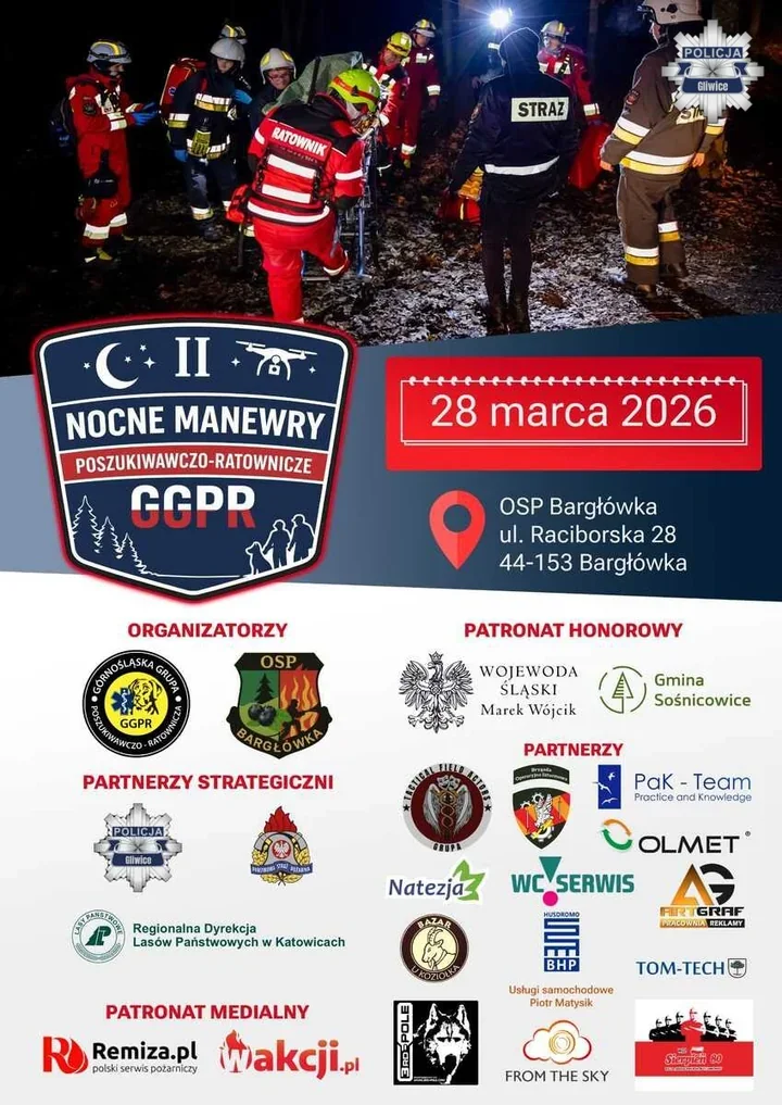 Wydarzenie odbywa się pod Patronatem Honorowym Burmistrza Sośnicowic. Organizatorzy proszą też o przekazanie informacji starszym domownikom i sąsiadom, żeby nocny ruch służb nie został odebrany jako realne zagrożenie.